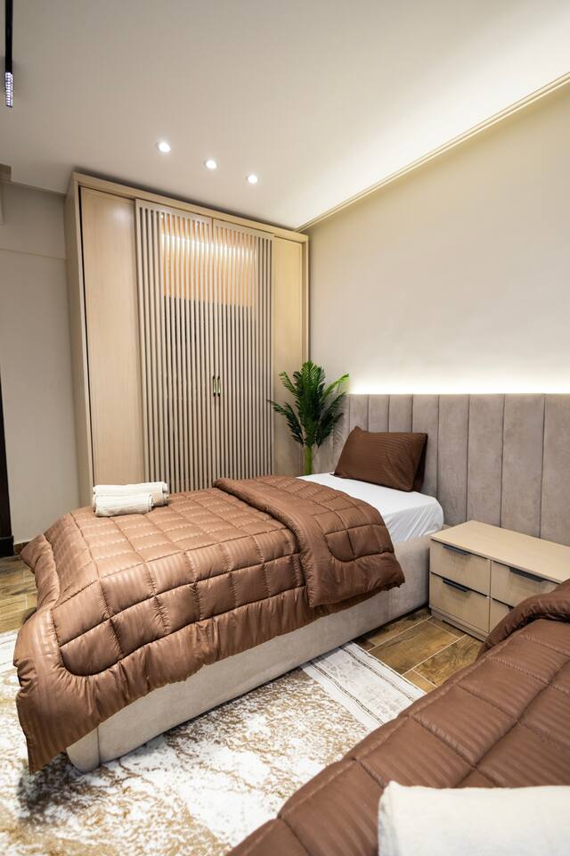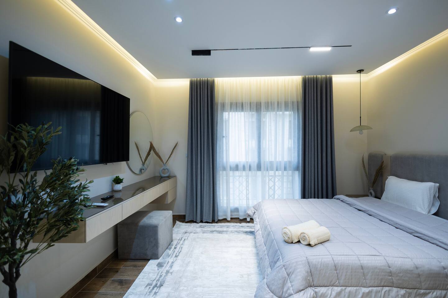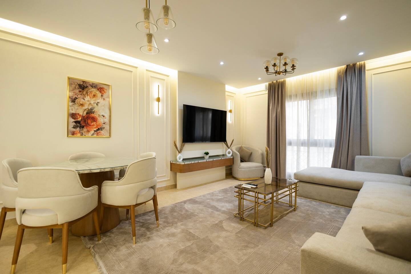 📍 *Prime Location – In the Heart of Cairo Close near the Famous Maadi in Arabesque Compound* Stay in a central and historic part of Cairo, just minutes from the Nile River, Maadi, and famous downtown restaurants. You’re close to the National Museum of Egyptian Civilization, 20 minutes from the Giza Pyramids, and 15 minutes from the bustling Khan El Khalili Bazaar. 🌆🚕 *What you’ll love:* ⛵Just minutes from the Nile River by car. 🛏️ *Three bedrooms with five beds* • *Master bedroom:* King-sized bed with plush bedding and wardrobe space. • *Second bedroom:* Two twin beds with comfortable mattresses, perfect for children or guests. • *Second bedroom:* Two twin beds with comfortable mattresses, perfect for children or guests. ❄️🔥 *Comfortable climate control* Powerful AC and heating throughout keep you cool in the summer and warm during winter. 🚿 *Three bathrooms* Each guest has their own bathroom, including a master bathroom in the king room. 🍳 *Open kitchen & lounge* The kitchen overlooks the lounge and is fully equipped with modern appliances, a stainless steel microwave, stone countertops, plates, and flatware—everything needed for a comfortable stay. 🏺 *Modern details* Modern furnishings, artwork, and fabrics crafted by local artisans give the apartment character and a touch of Egyptian charm. 🛋️ *Living & dining area* A bright and inviting lounge with comfortable seating, perfect for relaxing, socializing, or enjoying meals together. Large and comfortable reception area where guests can relax and feel welcome. 😊 This downtown Cairo apartment is perfect for families, friends, or couples seeking a stylish, central, and fully equipped base to explore the city. ✨
