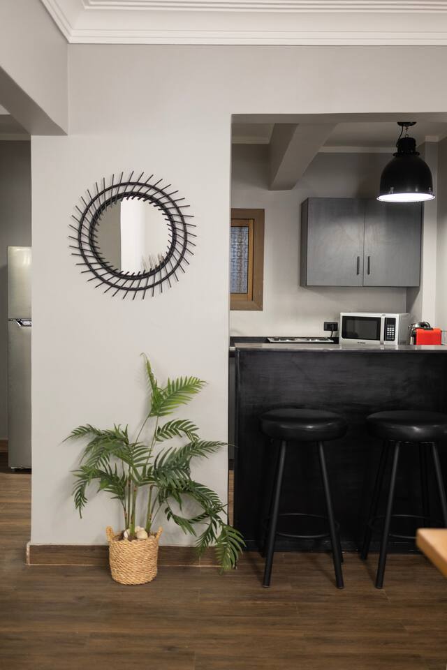 🛏️ Stylish & Specious 2-Bedroom Apartment This modern 2-bedroom apartment comfortably accommodates up to 4 guests, with queen-sized beds in both bedrooms—perfect for a restful and relaxing stay after a long day in Cairo ✨ What you’ll enjoy: ✈️ Just minutes from the airport by car, making arrivals and departures stress-free ❄️ Comfortable Bedrooms Each bedroom is thoughtfully designed and includes: 🛏️ A cozy queen-size bed ❄️ Cool & comfortable rooms Each bedroom features its own air-conditioning unit along with dedicated desks or vanity tables, giving you both comfort and space to prepare for your day. 🪑 A desk/vanity—ideal for working remotely or getting ready in the morning 🤫 The apartment is set away from busy streets, ensuring a *quiet and peaceful night’s sleep*, even for light sleepers. 💼🏖️ Perfect for Business or Leisure Whether you’re in Cairo for a short business trip or a longer stay, the apartment is fully equipped to meet your needs. 🍳 *Fully Equipped Kitchenette* Enjoy the convenience of a modern kitchen featuring: ☕ Espresso machine 🍿 Microwave 🧺 Washing machine 🚿 *Modern Bathroom* Designed with comfort in mind, the bathroom includes: 🌧️ Rain showerhead 💨 Hair dryer 🚽 Bidet 🪞 Chic vessel sink 📺 *Living & Dining Area* Unwind in the living room with: 📺 TV with access to major streaming platforms ☕ A cozy dining nook—perfect for coffee, meals, or planning your day 🚕 *Location & Easy Transportation* 🚕 Taxis and Ubers are always available right downstairs, with easy access to downtown attractions 🛡️ 24-hour building security for added safety and peace of mind throughout your stay 🏢 Elevator access – located on the 8th floor for easy and comfortable access This apartment combines comfort, privacy, and convenience—an ideal base for exploring Cairo or enjoying a productive, relaxing stay 🌿✨