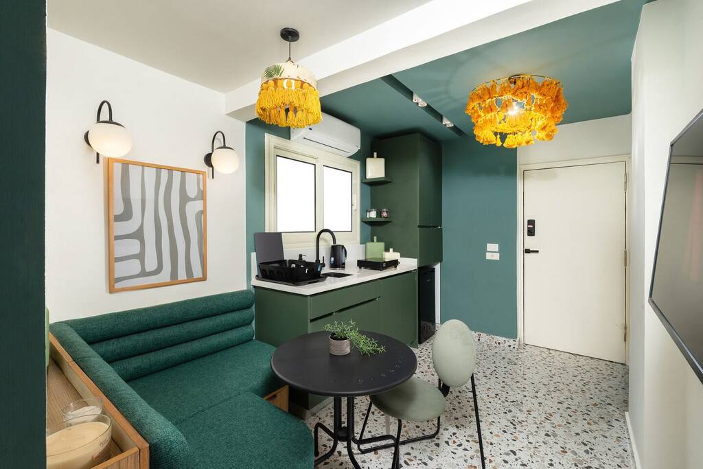 This artistic space opens first into a fully equipped kitchen and dining nook. Enjoy an electric kettle, microwave, mini fridge, coffee machine, and single-burner stove. The bedroom has a comfortable queen bed, multiple desks/vanities, and a full-length mirror to help you get ready in the morning. Better yet, this serene apartment faces away from any busy streets, providing a quiet environment suited for light sleepers. The bathroom has all the modern amenities you could want: a rain showerhead, hair dryer, bidet, and free soaps. Taxis and Ubers to the main attractions downtown are easy to catch downstairs, where 24-hour security in the building will be available for you.