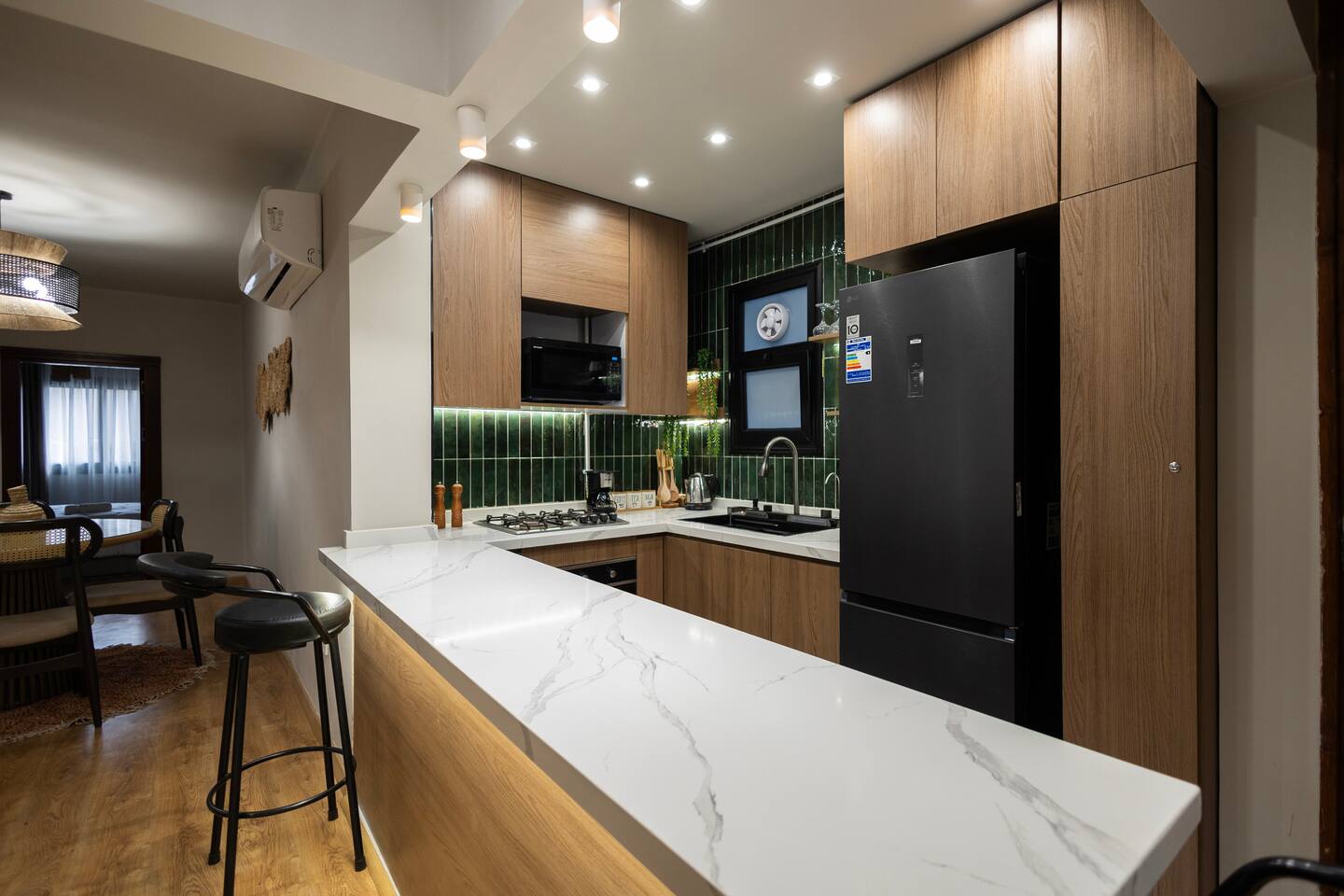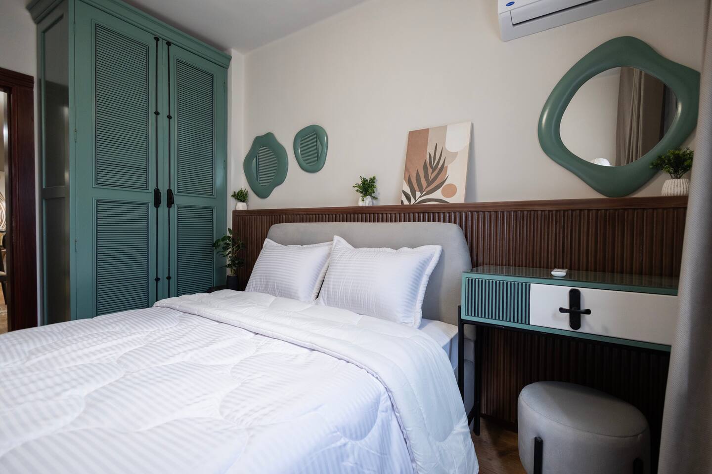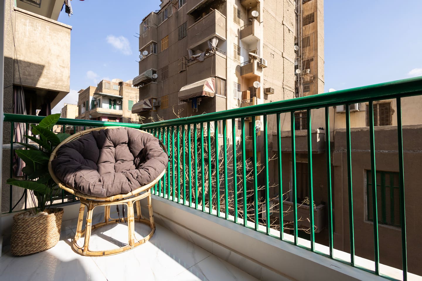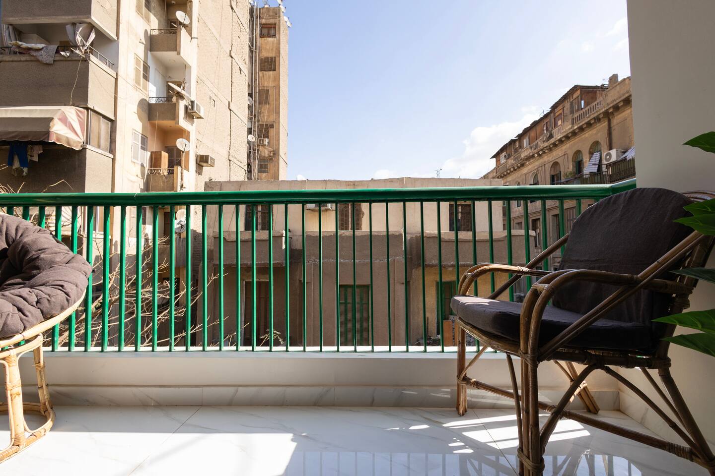 Welcome to your serene oasis in the heart of the city. This apartment combines old-world charm with modern comfort, making it ideal for families or small groups traveling together. Highlights include: 📍 Prime location! Step outside and immerse yourself in Downtown Cairo ☕ Coffee shops, fruit stands, and local restaurants nearby 🏛️ Walking distance to historic monuments: Abdeen Palace Museum and Tahrir Square 🚕 Easy access to taxis / Uber right outside 🛏️ Two bedrooms designed for maximum comfort: queen-size beds, spacious wardrobe, vanity/work desk ❄️ Air conditioning and heating throughout 🌤️ The master bedroom opens onto a private balcony with seating—perfect for enjoying a fresh breeze and a scenic moment outdoors 🚿 Bathroom features a brand new laundry machine, hair dryer, and shower 🍳 Cook and dine with ease in a fully equipped kitchen, which features a gas stove, oven, microwave, kettle, coffee maker, refrigerator, ample counter space, and bar seating overlooking the dining area 🛋️ Living room with TV loaded with popular streaming platforms ✨ Perfect base to explore Cairo—comfortably, safely, and in style.