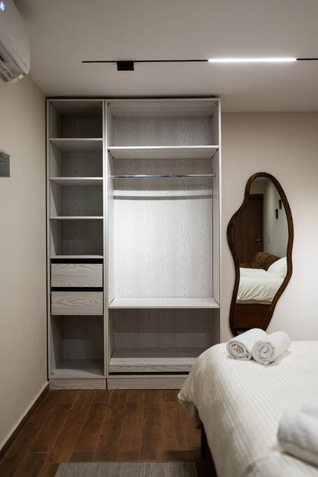 Experience eclectic charm in historic downtown Cairo. This stylish studio features a queen bed, a cot bed, powerful AC, and a jacuzzi tub for ultimate relaxation. Enjoy a fully equipped kitchenette, large wardrobe, and access to a shared backyard oasis. Steps from iconic sites, it offers more amenities than a hotel—at a fraction of the cost.