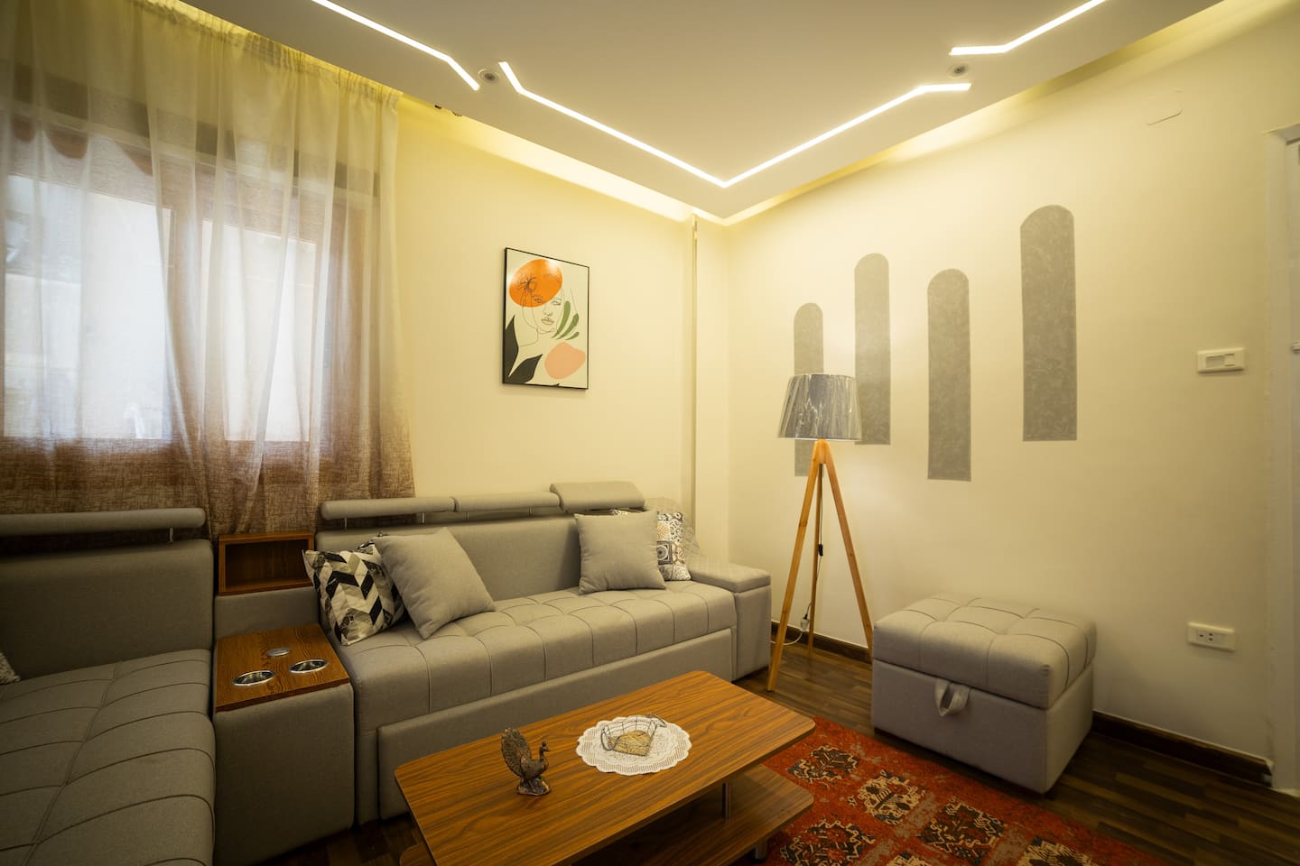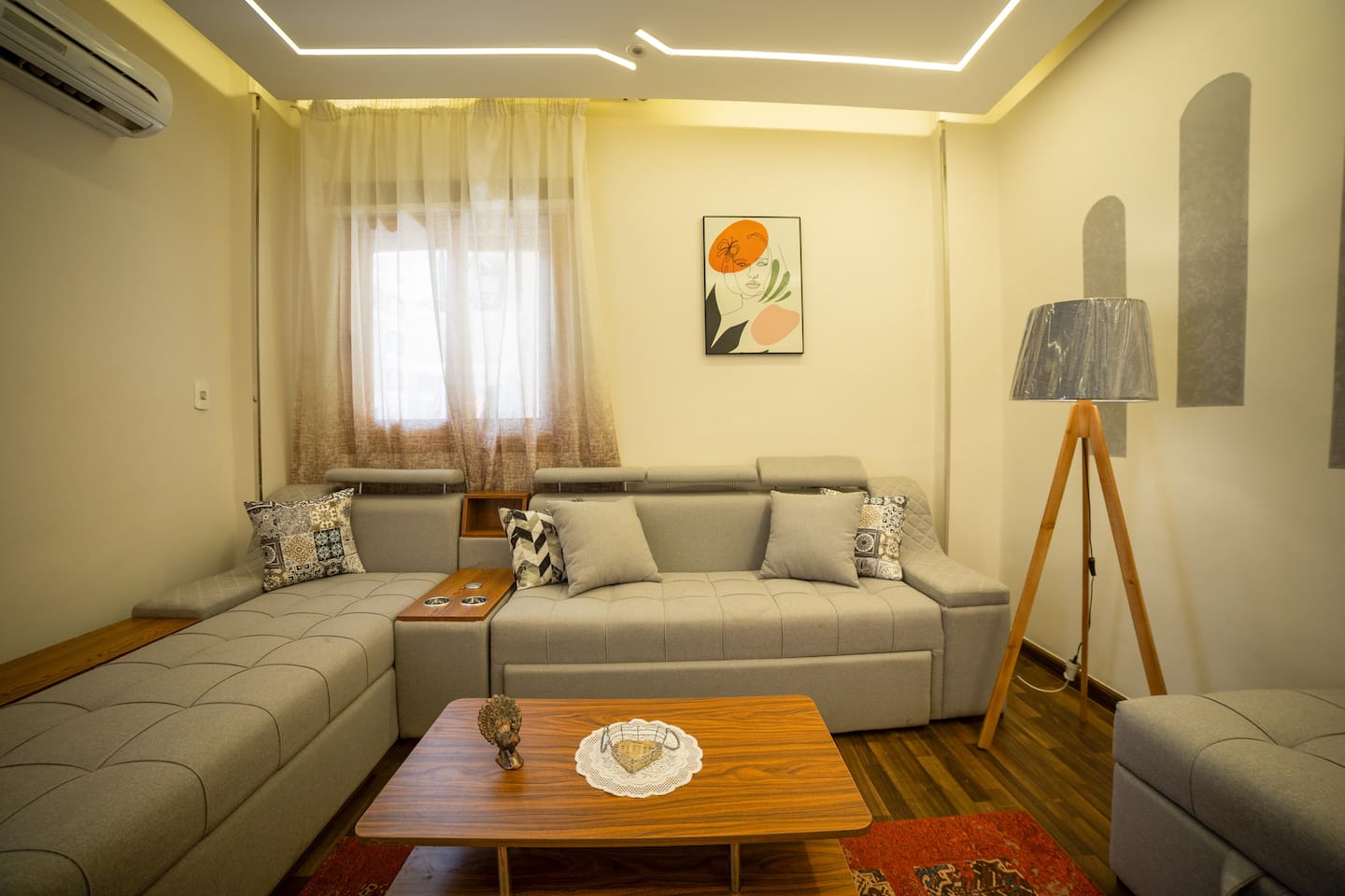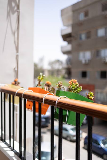 -The two bedrooms and the main space have ACs for hot Cairo summer days. -The flat is on the second floor and there is an elevator on the building, you will take it to go up and down.