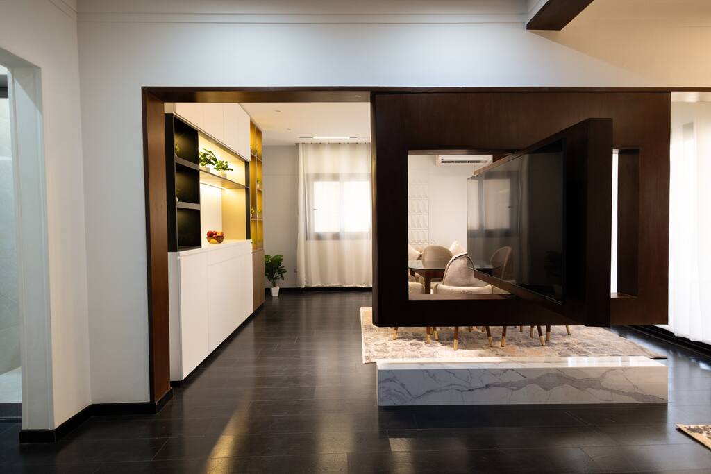 Experience modern luxury in the heart of Heliopolis, Cairo, in this newly renovated 3-bedroom apartment. Perfectly located just minutes from Cairo International Airport, this 4th-floor sanctuary offers a spacious and sleek design with custom-made furniture and artwork by local artisans. With enough space to comfortably sleep six guests, two stylish bathrooms, and a balcony for fresh air, this apartment is ideal for travelers seeking a sophisticated and comfortable home base while exploring Cairo