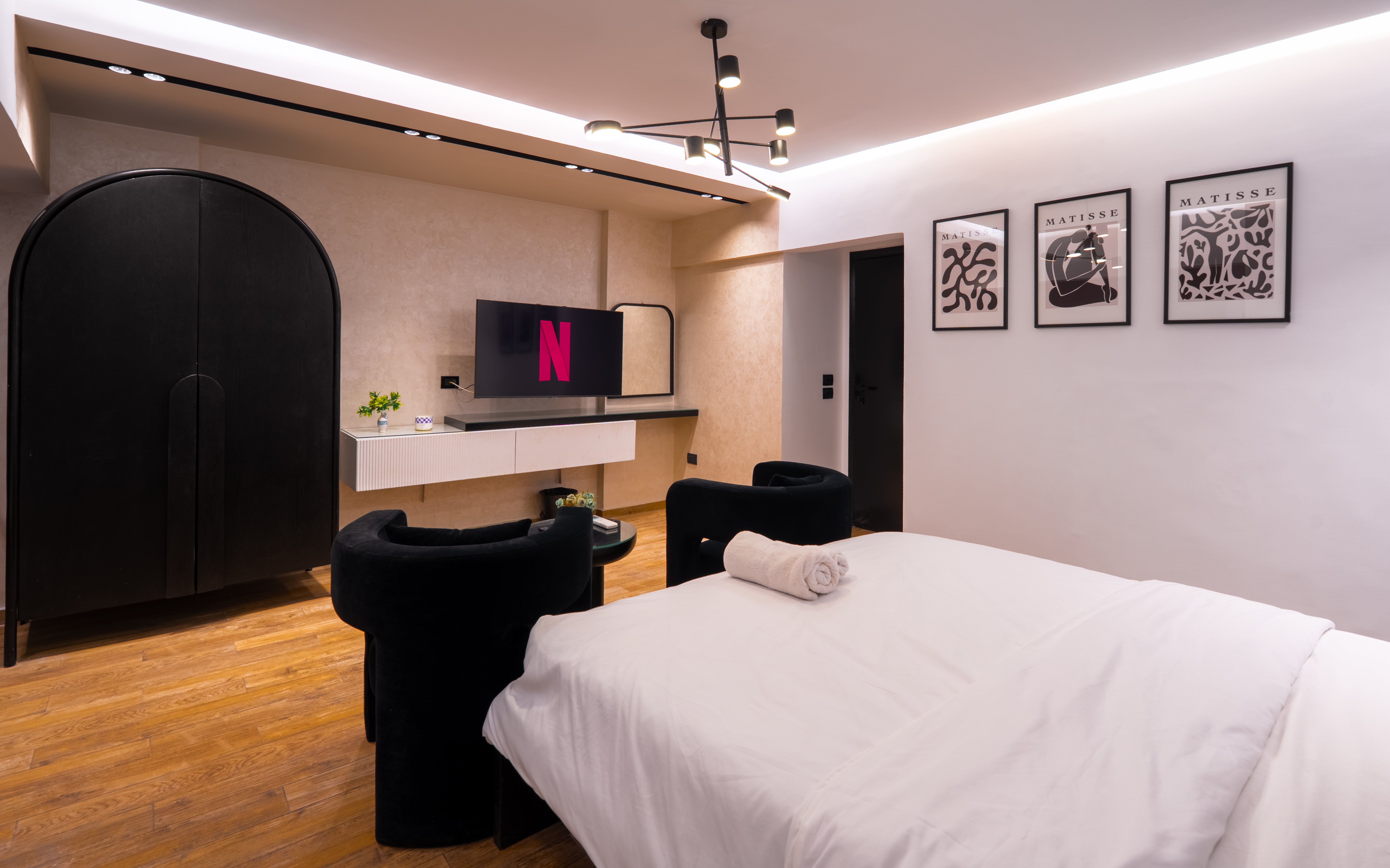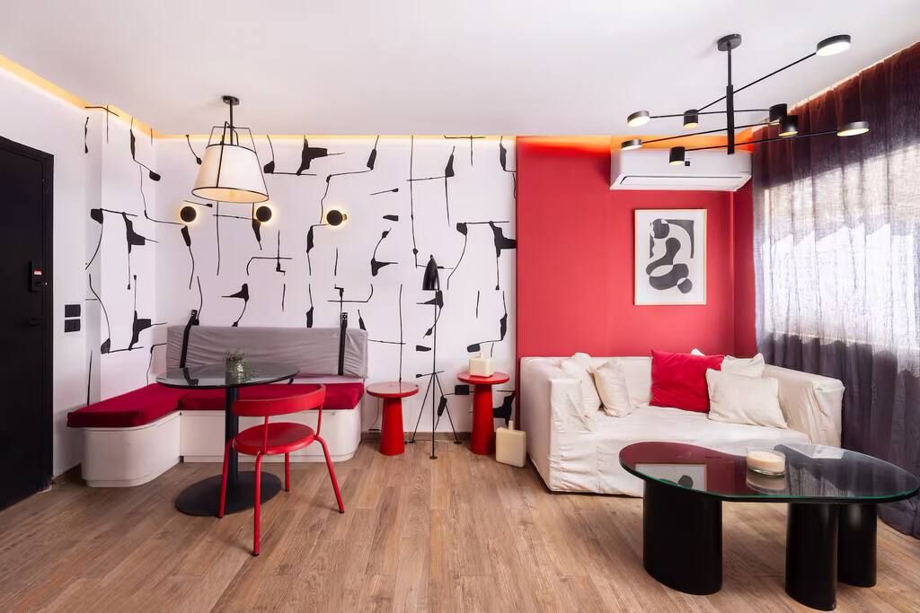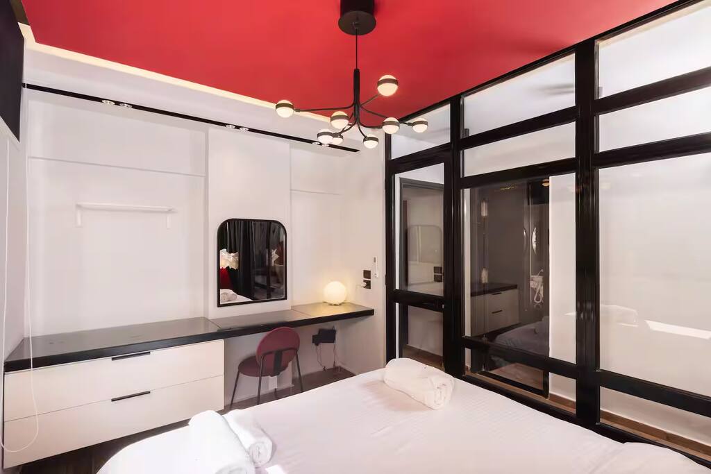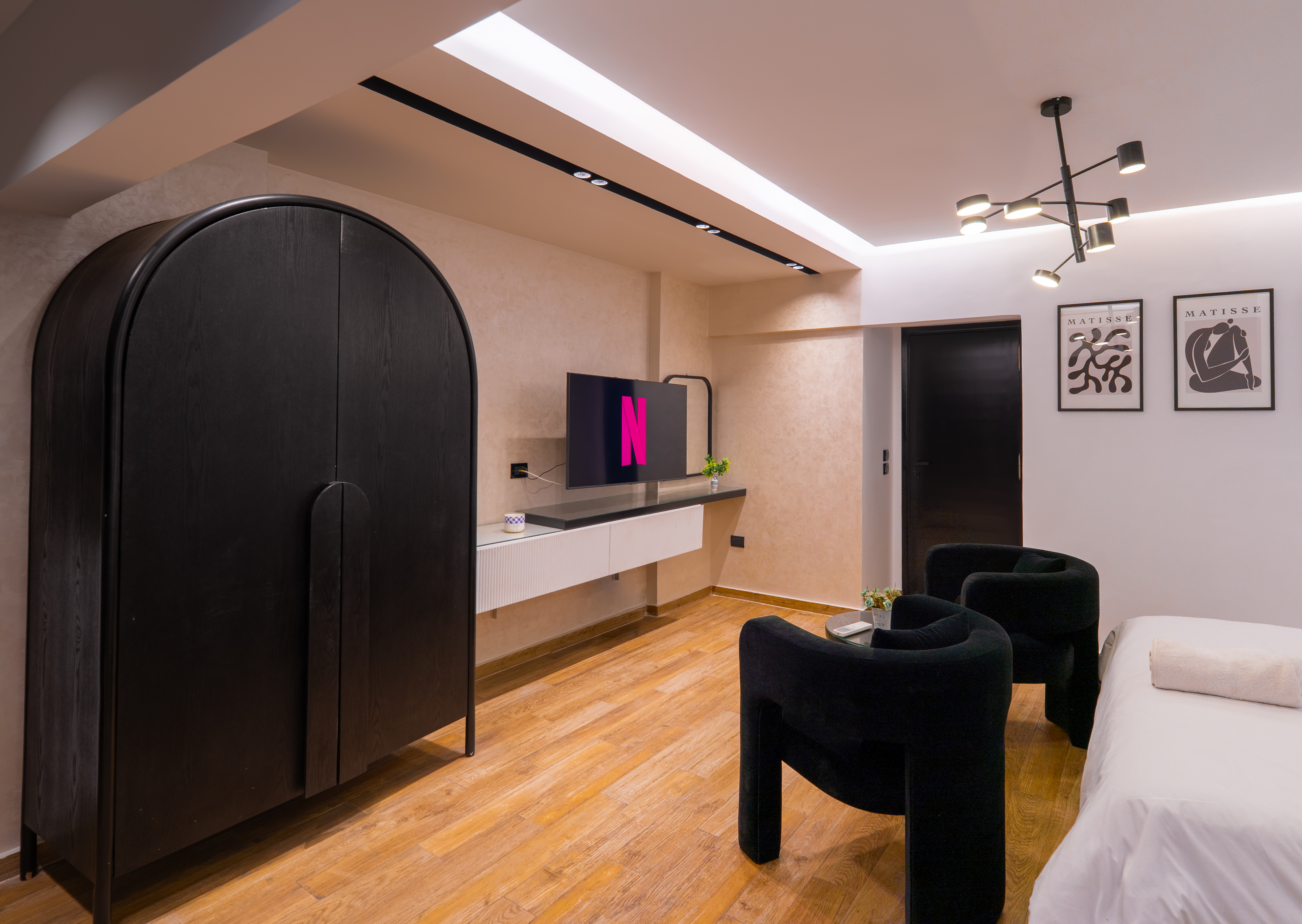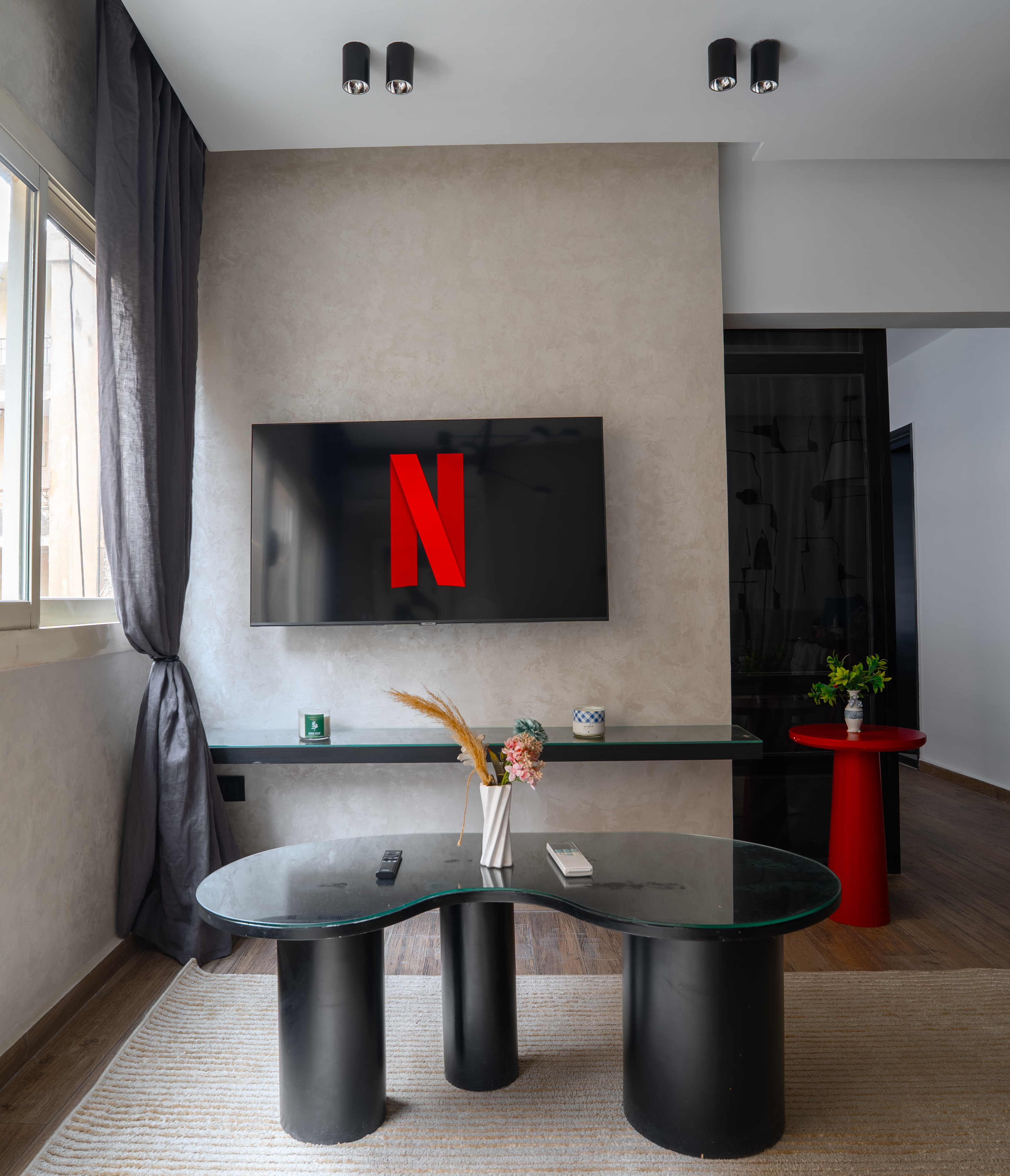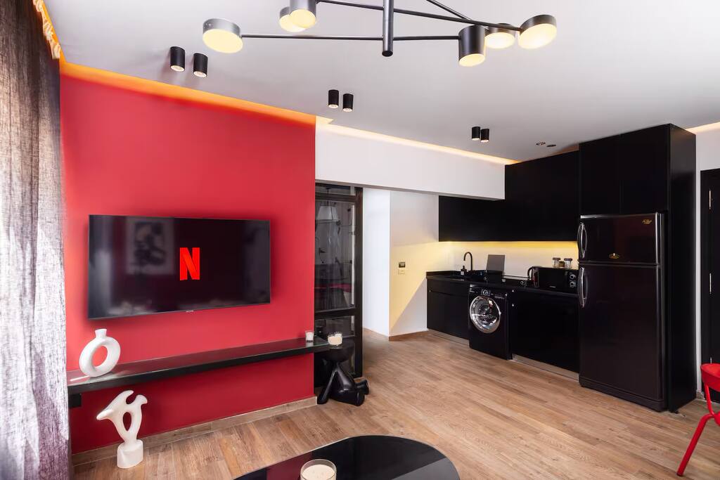 This stylish 2-bedroom apartment sleeps up to 4 guests, with queen-sized beds in each bedroom. Each sleeping area comes with an AC to keep you cool during sunny Egyptian days and a desk/vanity to get ready in the morning. Plus, this apartment is tucked away from any busy streets, guaranteeing a peaceful, quiet night’s sleep for even the lightest sleeper. It has everything you would want for either a quick business trip or extended stay. The kitchen is fully equipped with espresso machine, microwave, and washing machine. Enjoy a modernized bathroom that includes a rain showerhead, hair dryer, bidet, and chic vessel sink. Kick back in the living room to watch some TV with all the major streaming platforms. Enjoy a morning coffee in the dining nook. You’ll bookend your trip with easy commutes from the airport, just minutes away by car. Taxis and Ubers to main attractions downtown are easy to catch downstairs, where a 24-hour security in the building will be available for you.