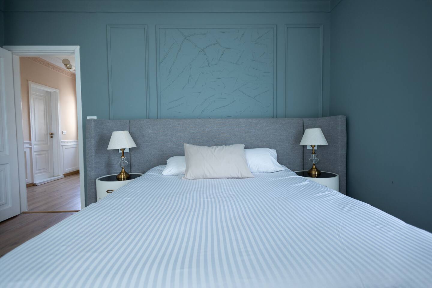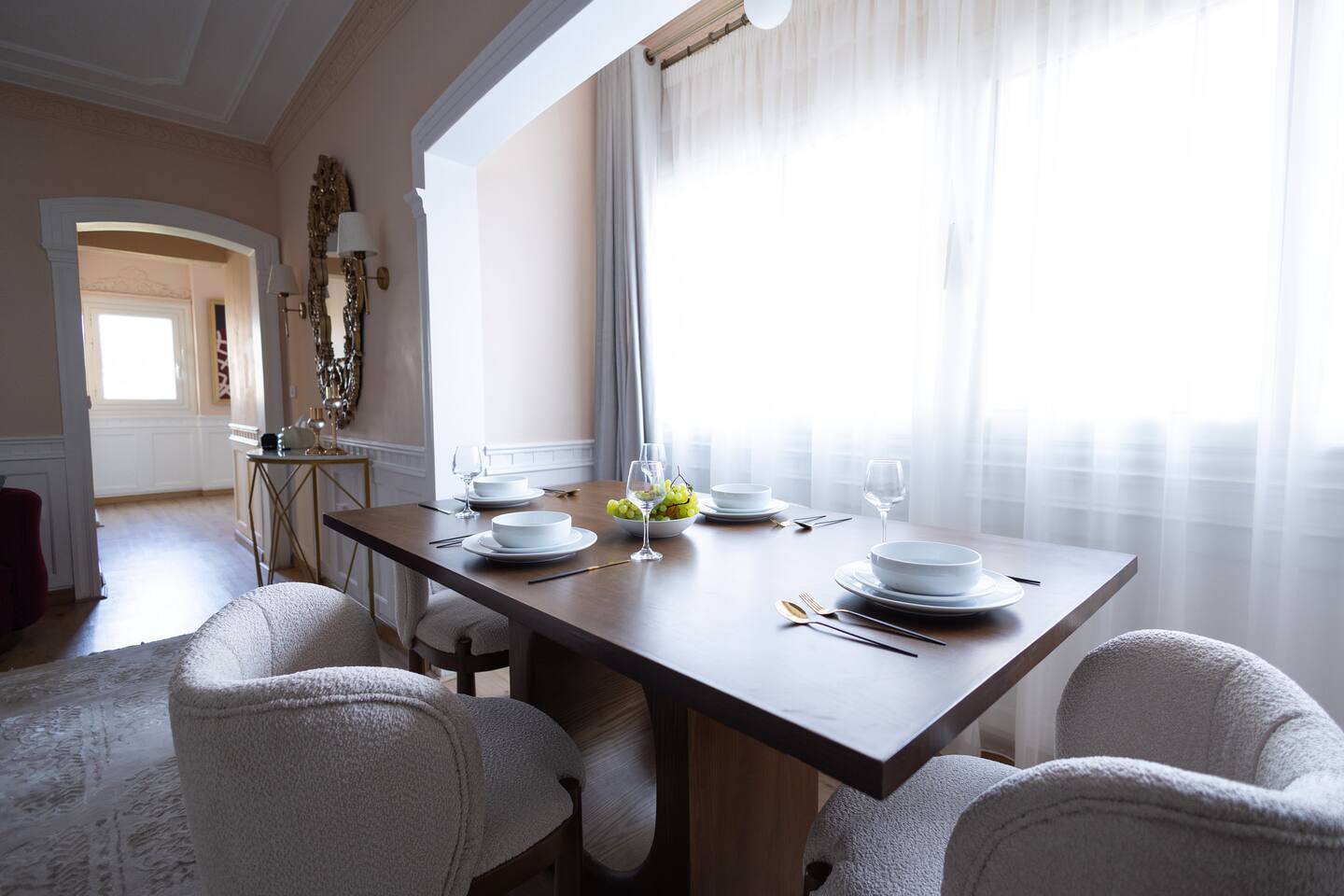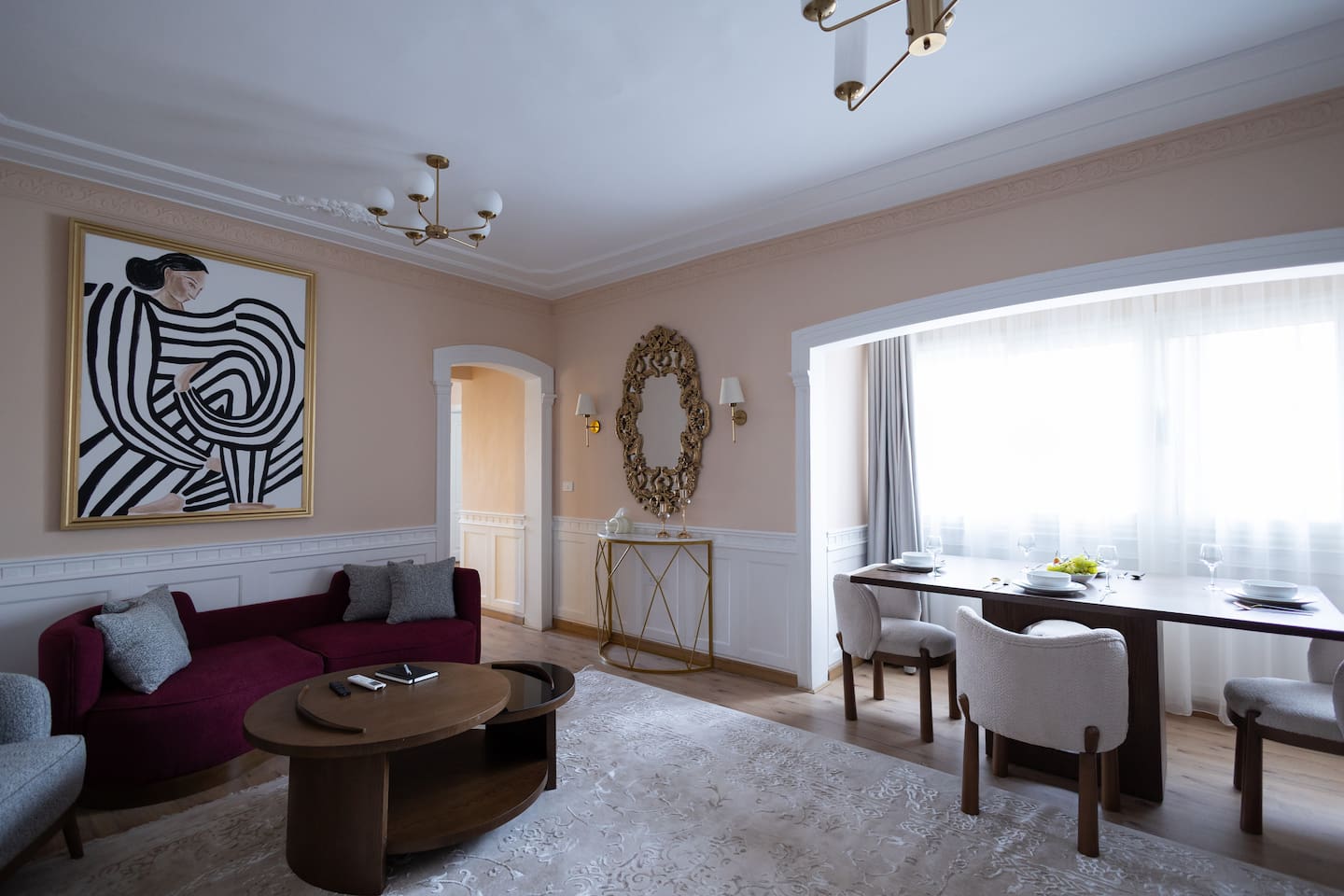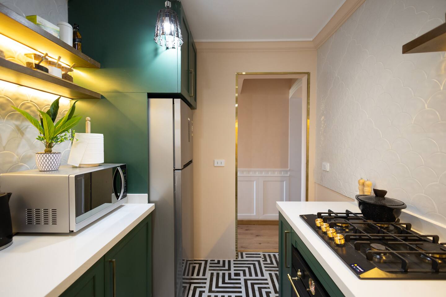 Experience modern elegance and timeless charm in this artfully restored Cairo apartment. Highlights include custom local artwork, peaceful bedrooms with private balconies, a fully equipped built in kitchen, and two stylish bathrooms. Just steps from 26th of July St, The Hilton, and the Nile, it’s the perfect retreat near award-winning restaurants, embassies, and transit. A charming hallway window offers a glimpse of the Nile, especially magical when it lights up at night.